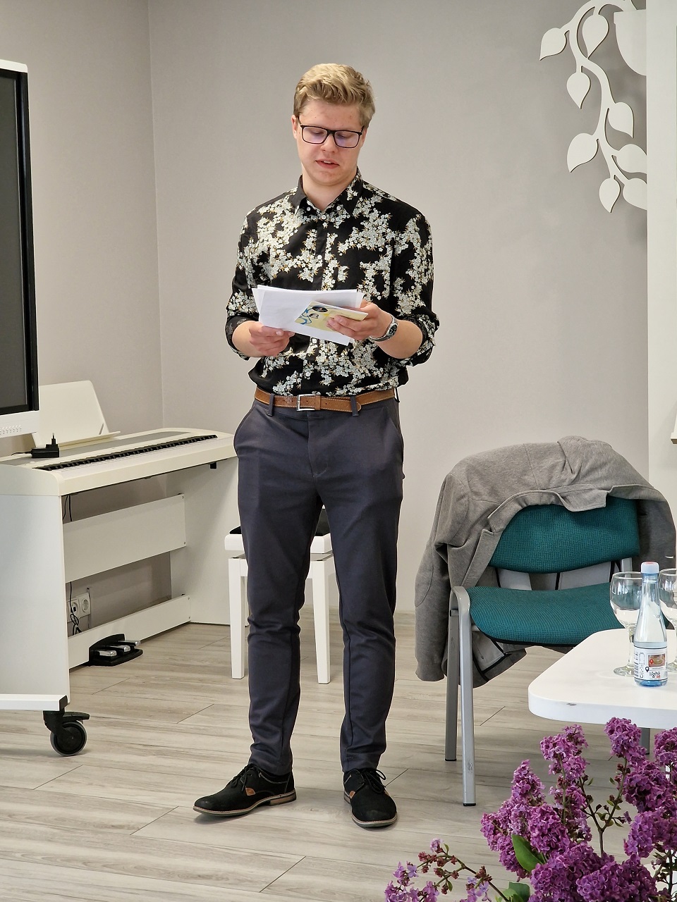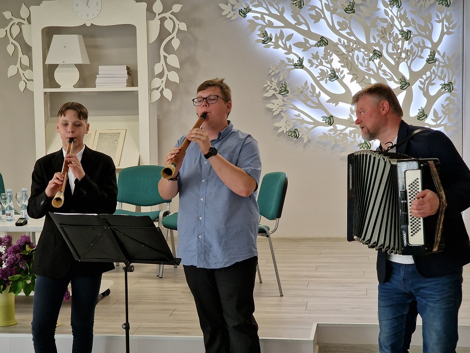 Poezijos popietę muzikiniais garsais nuspalvino Radviliškio muzikos mokyklos birbynės specialybės mokiniai Vakaris Valčiukas ir Rytis Miškinis, kurie atliko kompozitoriaus Jono Švedo „Du broliukai dobiliukai“, Prano Tamošaičio „Senovinį valsą“ ir „Birbynių polka“. Akordeonu jiems pritarė mokytojas Tomas Kanapinskas.
