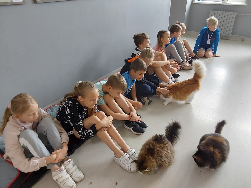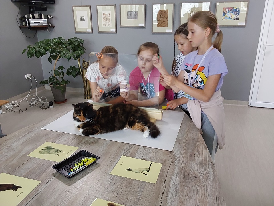 Ketvirtoji Radviliškio viešosios bibliotekos jaunųjų stovyklautojų diena buvo kupina kūrybos ir atradimų. Knygos bičiuliai vyko į Šiaulius, kur lankėsi Jaunųjų gamtininkų centre. Čia jie dalyvavo net dviejose edukacijose: „Šviečianti pasaka“ ir „Pajusk emociją su gyvūnu“. Katinų muziejuje susipažino su gyvais eksponatais katinais – direktoriumi Perlu, Morka, Vanile ir Mildute, apžiūrėjo gausią muziejaus eksponatų kolekciją, sužinojo jos atsiradimo istoriją. Stovyklautoja Smiltė pasekė brolių Grimų pasaką „Kaip katė su pele draugavo“, vaikai dalijosi įspūdžiais apie savo augintinius katinus bei kates, piešė ir kūrė istorijas ant šviečiančių molbertų.