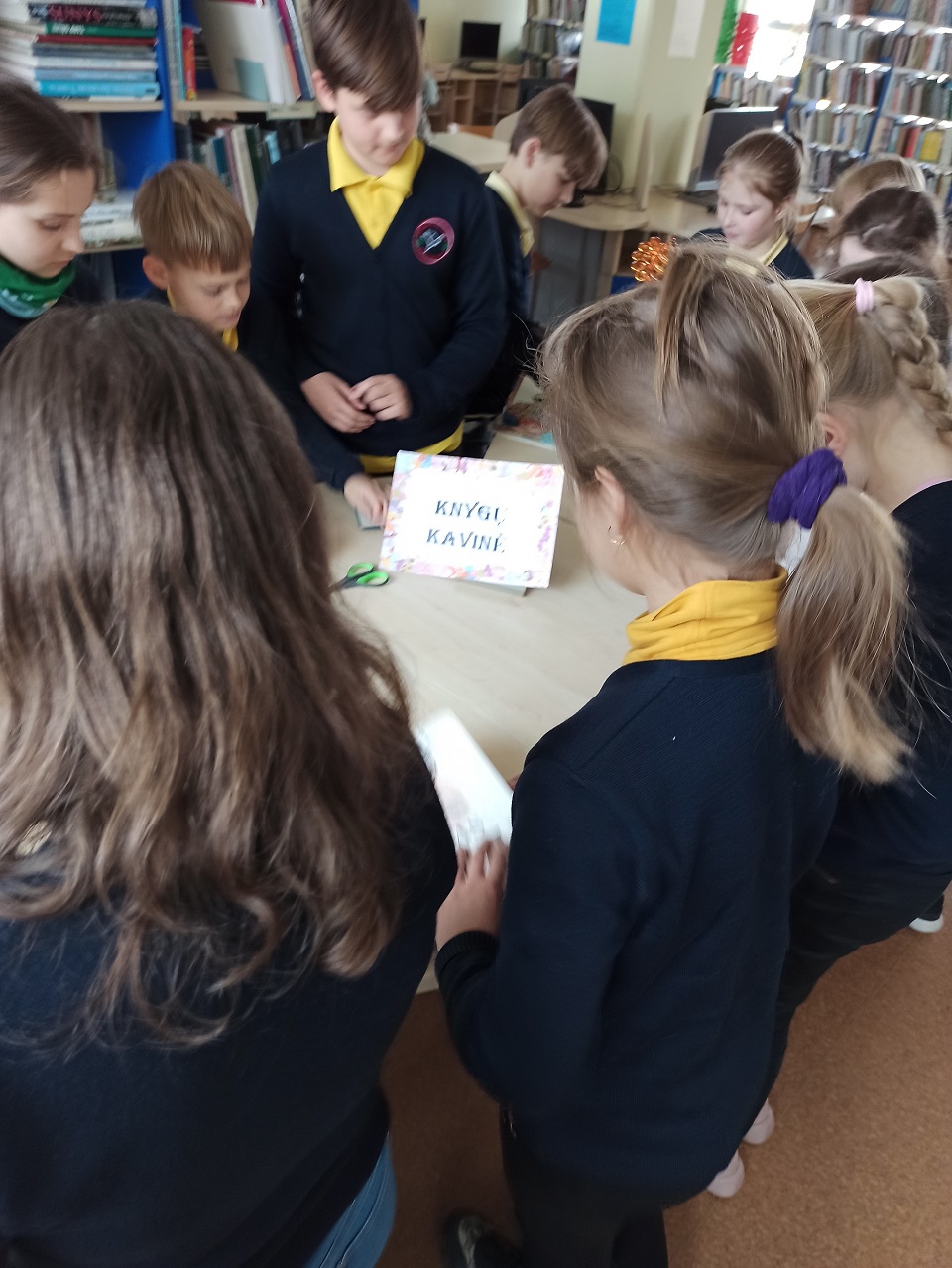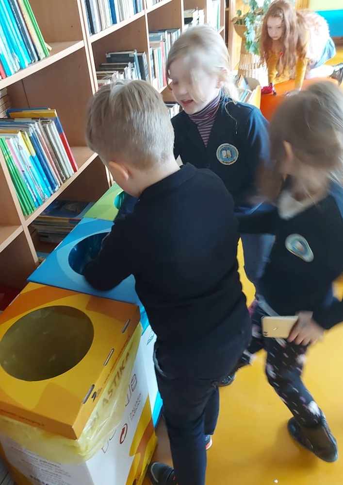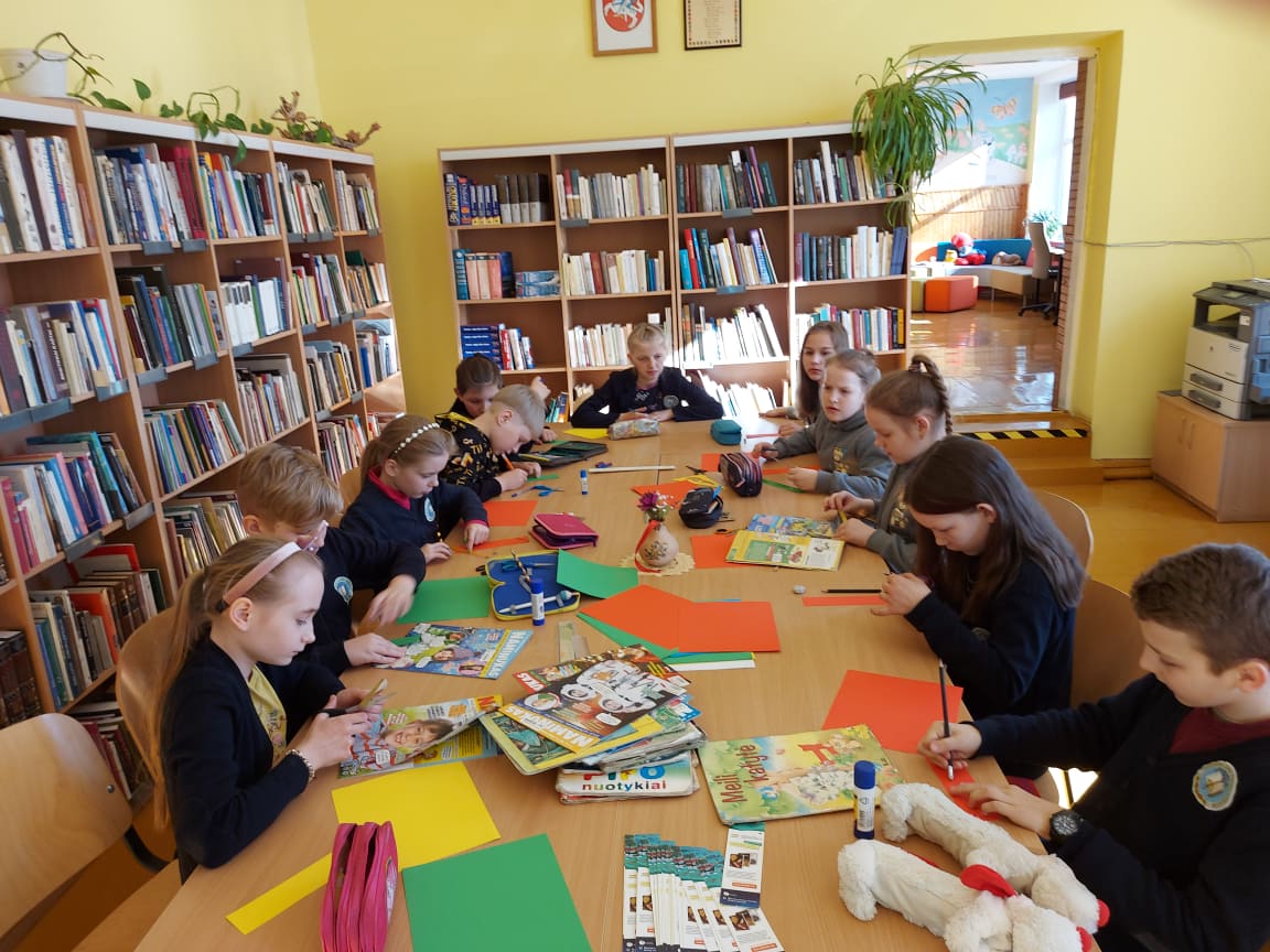 Grinkiškio Jono Poderio gimnazijos 4 klasės mokiniai gamino knygų skirtukus, kuriuos dovanos bibliotekos skaitytojams, o Grinkiškio Jono Poderio gimnazijos 1 klasės mokiniai dalyvavo popietėje „Rūšiuoji – vadinasi galvoji“.