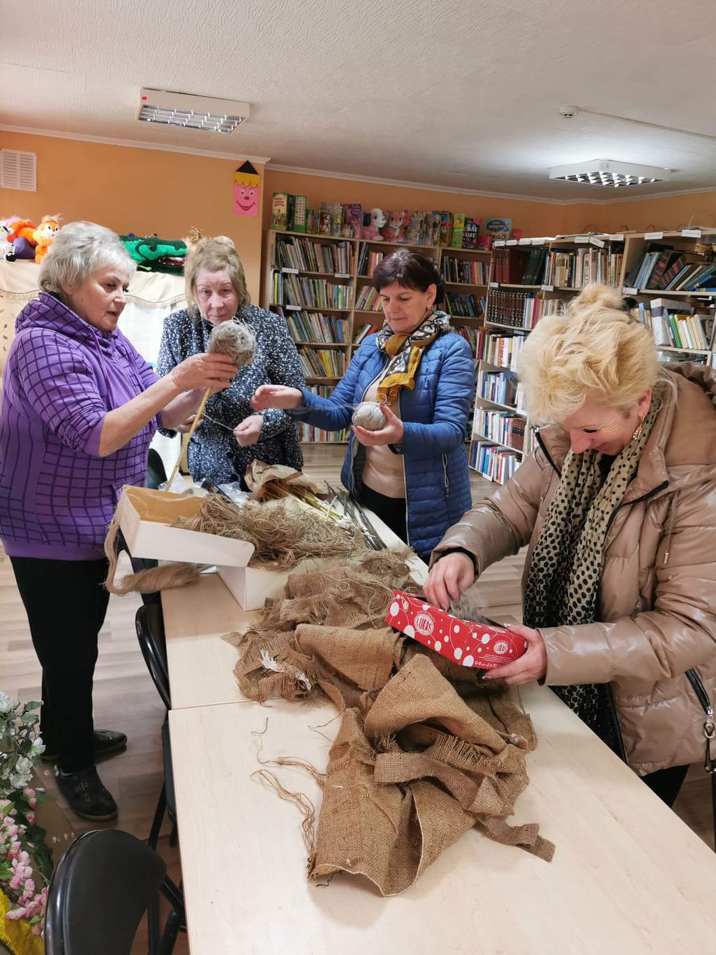 Daugėlaičių bibliotekoje susirinkusieji iš antrinių žaliavų kūrė aguonos žiedą, vyko knygų restauravimo-klijavimo dirbtuvės.