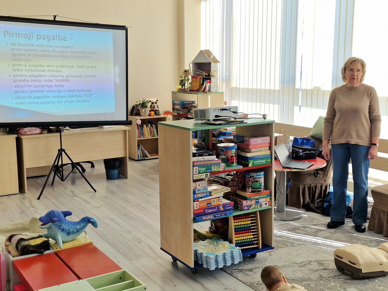 Balandžio 21 d. rytmetį Radviliškio viešosios bibliotekos „Skaitukų“ būrelyje svečiavosi Radviliškio visuomenės sveikatos biuro specialistė Skaidrė Armonienė. Paskaita apie pirmąją pagalbą, įvykus alerginėms reakcijoms, kraujuojant, užspringus, įkandus vabzdžiams ar nusideginus, praturtino dalyvių žinias. Susirinkusios mamos praktiškai išbandė gaivinimo ir pagalbos užspringus metodus bei mokėsi taisyklingai uždėti turniketą. Dėkojame lektorei už labai naudingus ir praktiškus mokymus.