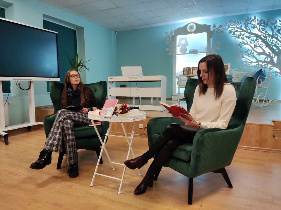 Kartu su knygos autore atvyko ir jos draugė Jurgita Smiltė Jasiulionė – kurianti ir dainuojanti psichologė, kuri vedė įdomų pokalbį su rašytoja ir susirinkusius džiugino užburiančiais muzikos garsais.